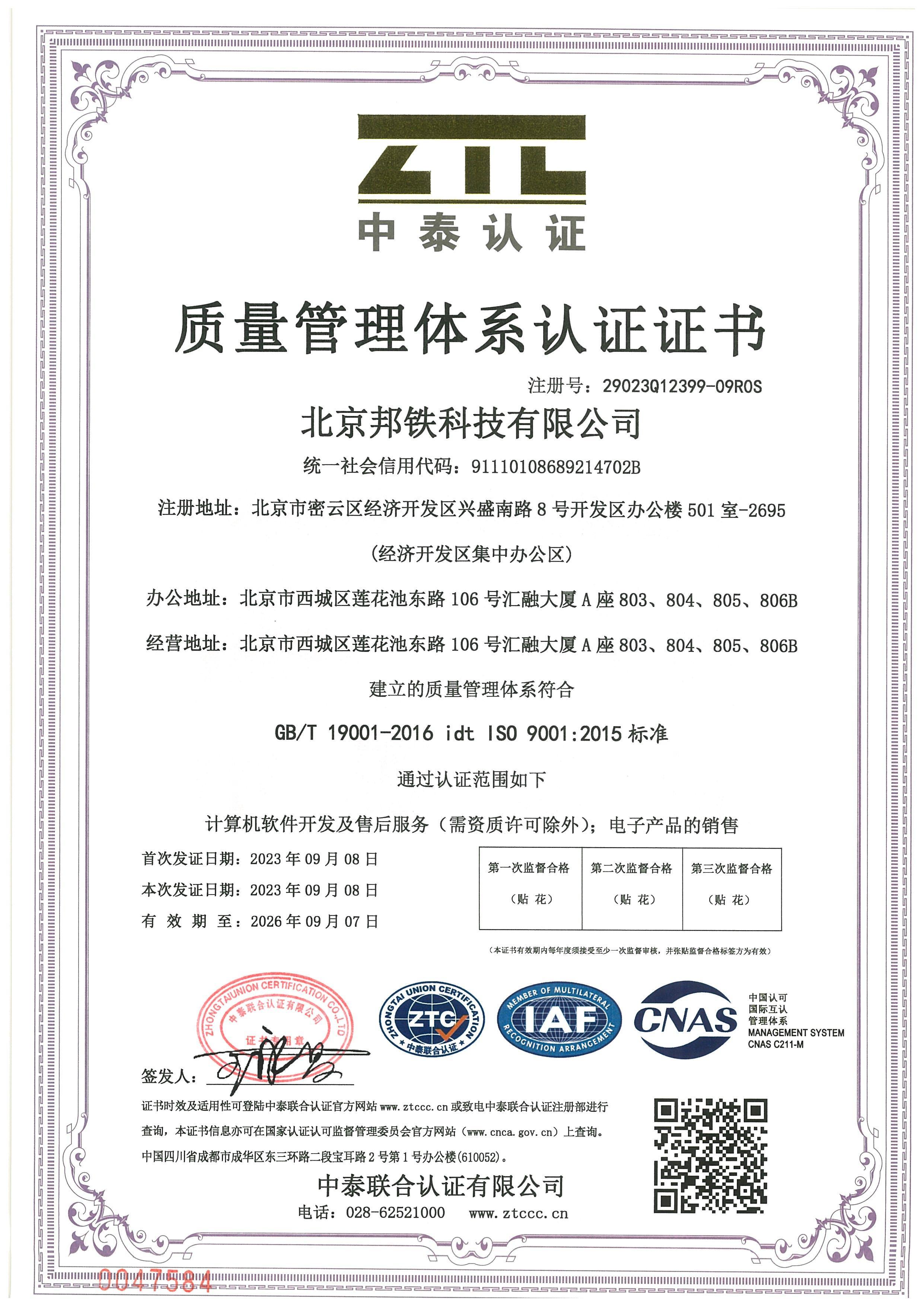 質量管理體系認證證書