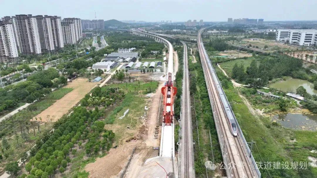 2025/06/09中國鐵路上海局消息:6月6日4時30分,在安徽省蚌埠市龍子湖區長淮衛鎮淮宿蚌城際鐵路建設現場,最后一榀簡支箱梁精準架設在蚌埠南右線特大橋48號墩至49號墩間,標志著淮宿蚌城際鐵路全線架梁任務順利完成,為后續無砟...